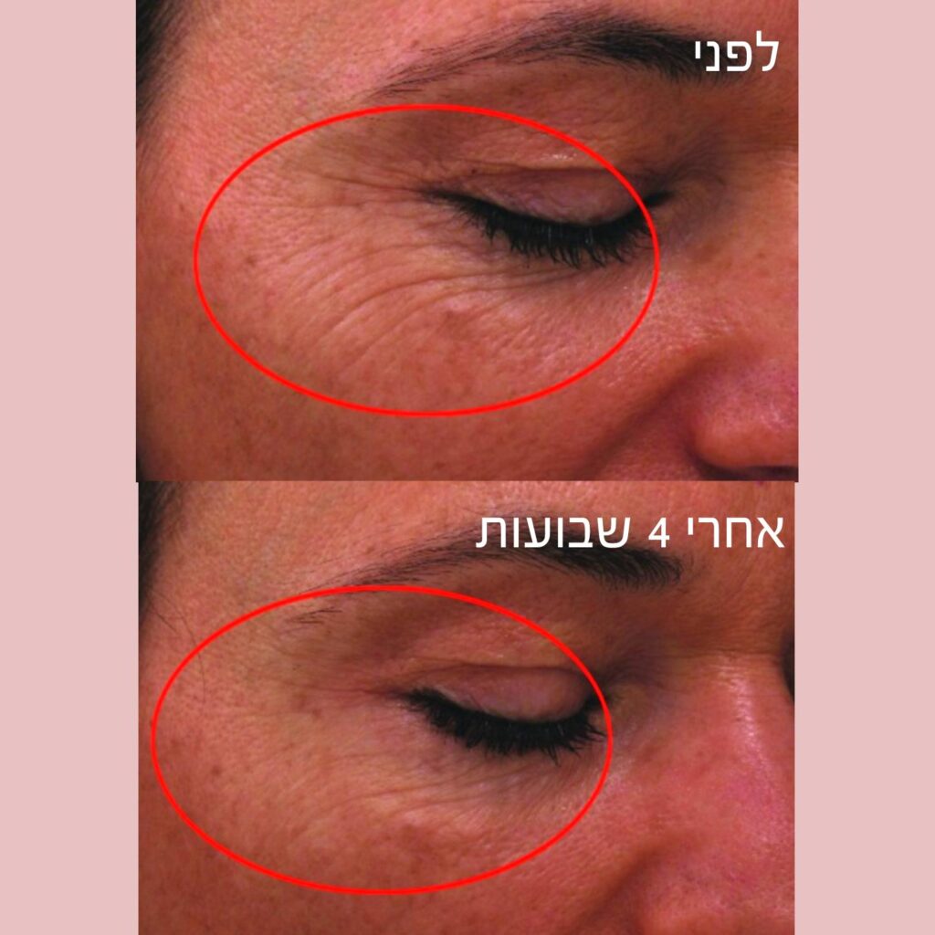 אני מתחילה לשים לב לשיפור ניכר בקמטים שהיו לי מתחת ובצידי העיניים וגם במצח. הביטחון העצמי שלי חוזר אליי ואני סוף סוף עם פחות מייקאפ – תודה לכם !!!